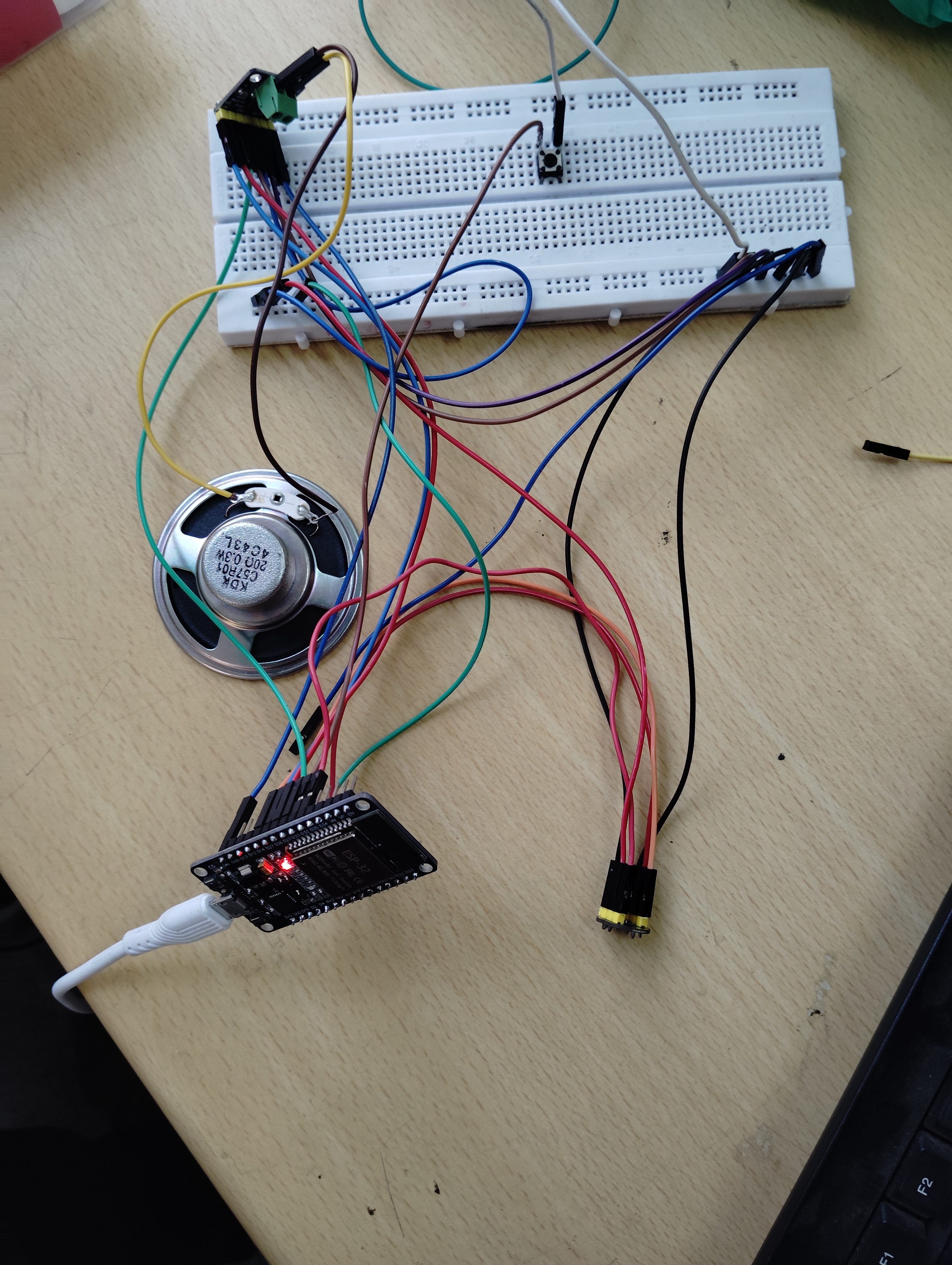 I tried implementing the complete system, but the hardware did not work properly as a whole. To identify the issue, I tested each component individually. The speaker worked correctly and produced a beep sound during testing. However, problems were encountered when the microphone and amplifier were used together, so the complete audio loop could not function as expected.