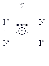 The spinning direction of a DC motor can be controlled by changing the polarity of its input voltage. A common technique for doing this is to use an H-bridge. An H-bridge circuit consists of four switches with the motor in the centre forming an H-like arrangement. Closing two specific switches at a time reverses the polarity of the voltage applied to the motor. This causes a change in the spinning direction of the motor