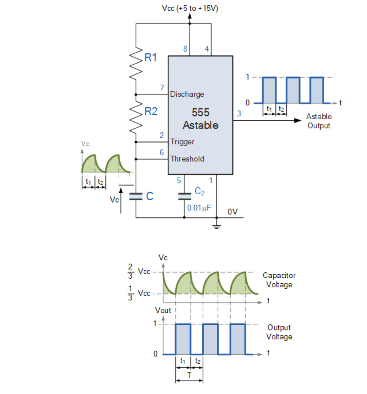 Working of 555 timer: