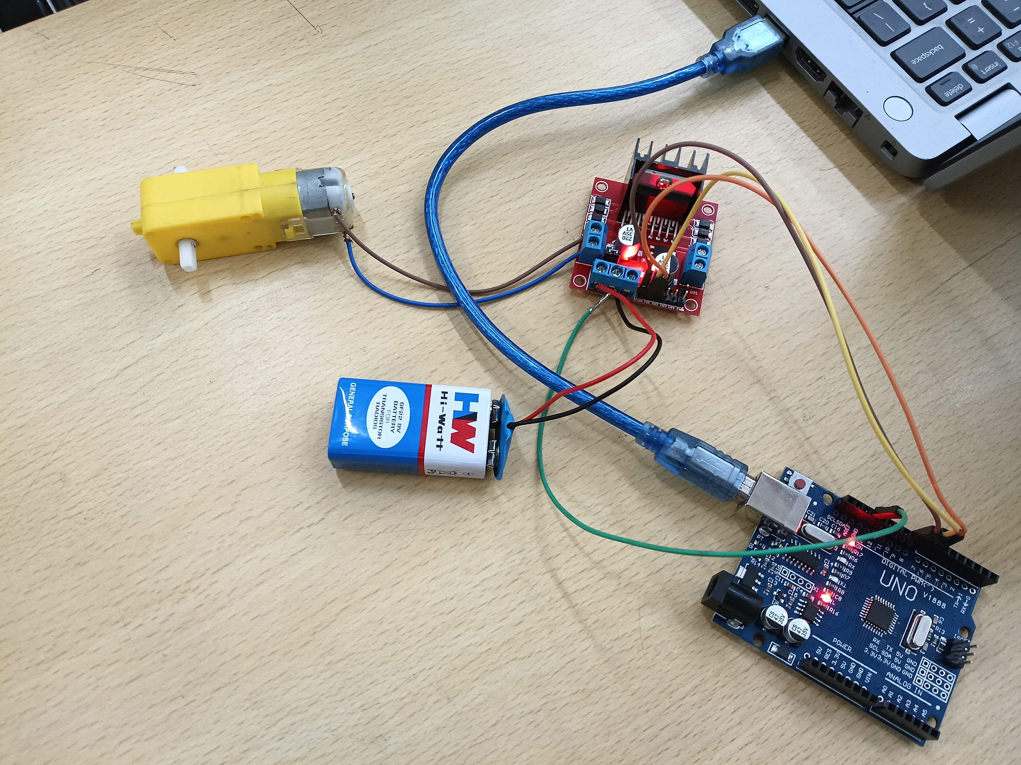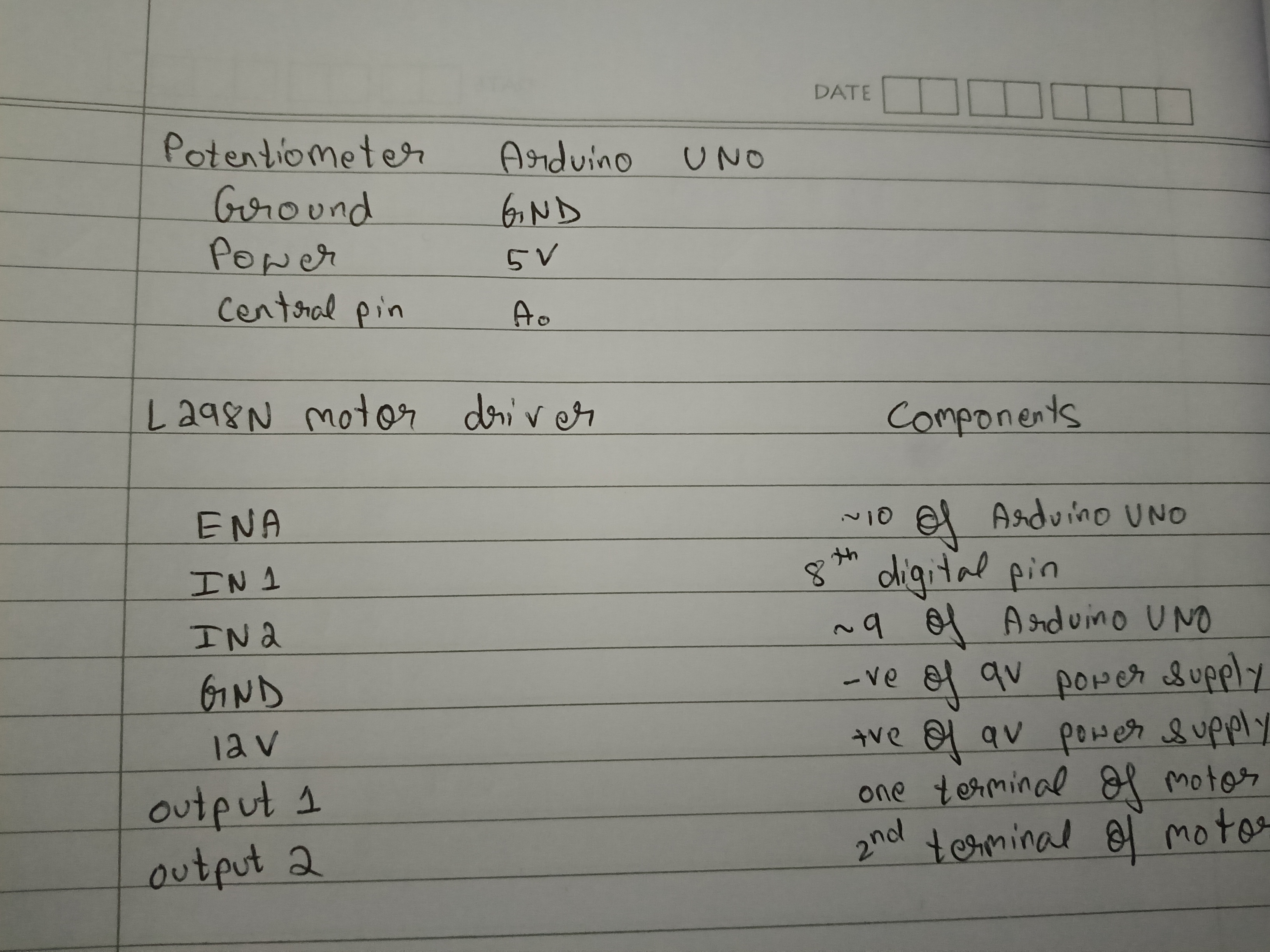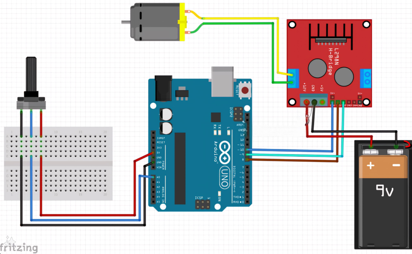 Objective:Understand the control DC motors using the L298N motor driver and the Arduino board. Using an UNO and H-Bridge L298N motor driver, control the speed of a 5V motor. Methodology: