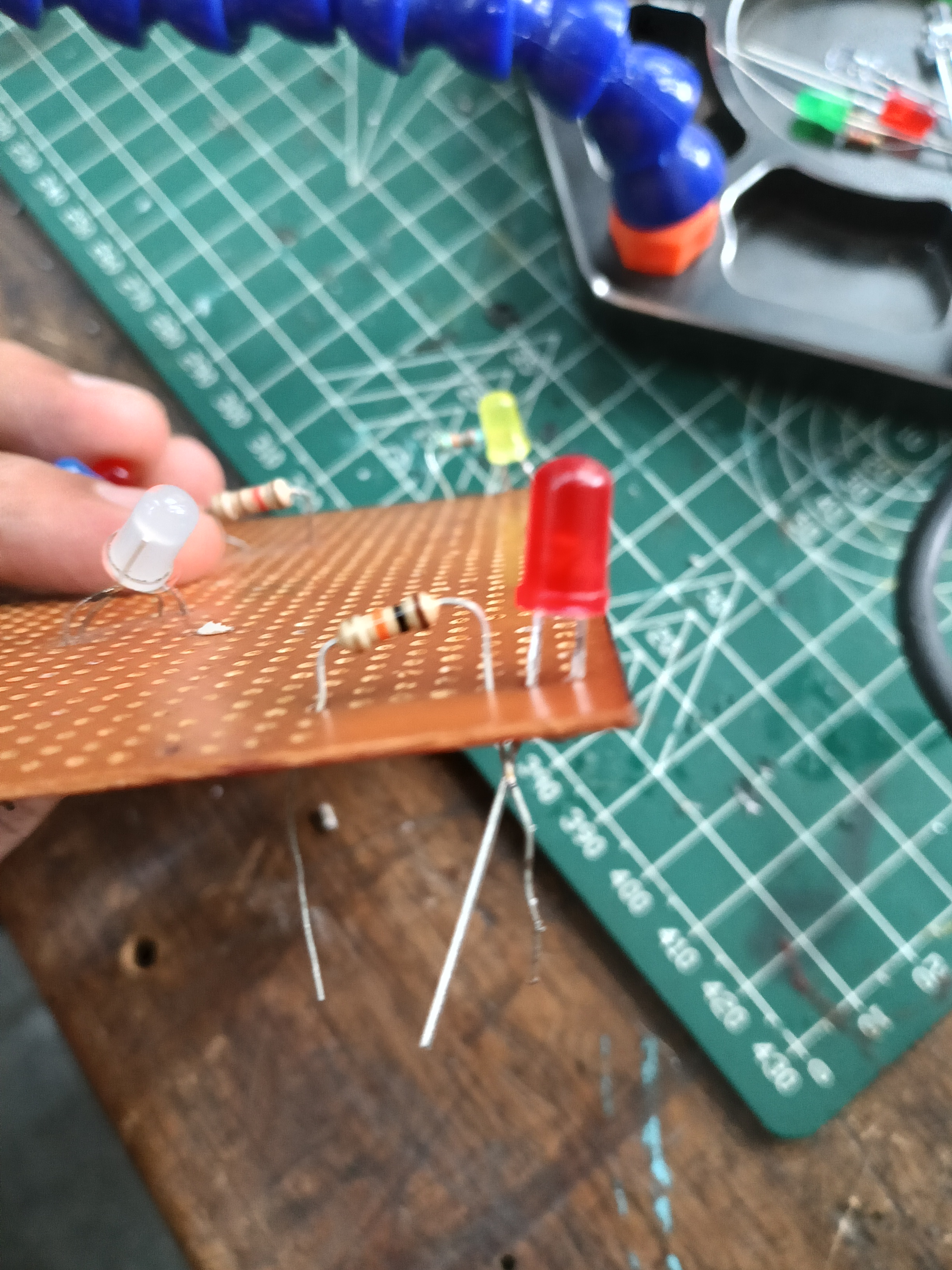 This was my first experience soldering and it was great. I soldered a LED with a resistor on a perf board,ensuring proper orientation.