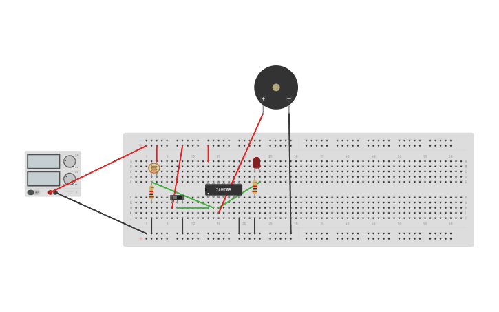 designed a burgular alarm using photosensitive diode which when triggered in presence on light rings the buzzer along with the light.