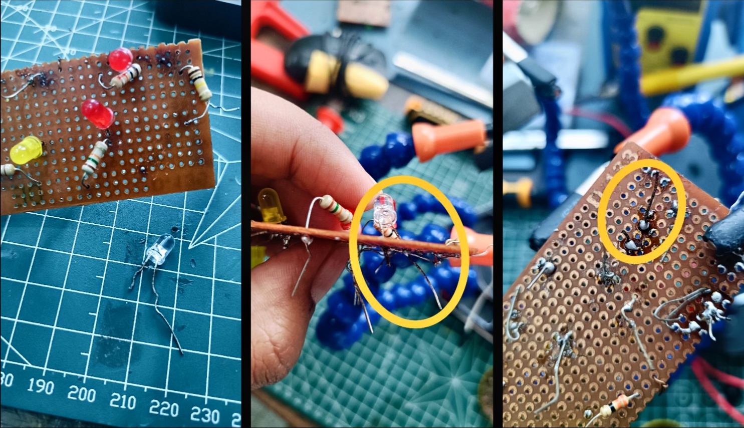 In this task, I got familiar with basic soldering equipment including the soldering handle, soldering wick, rosin flux, holder and electric supply. Under coordinator supervision, I practiced by desoldering an LED and soldering it back again. This task helped me understand proper soldering technique, heat control, component handling and the role of flux and wick in clean solder joints.