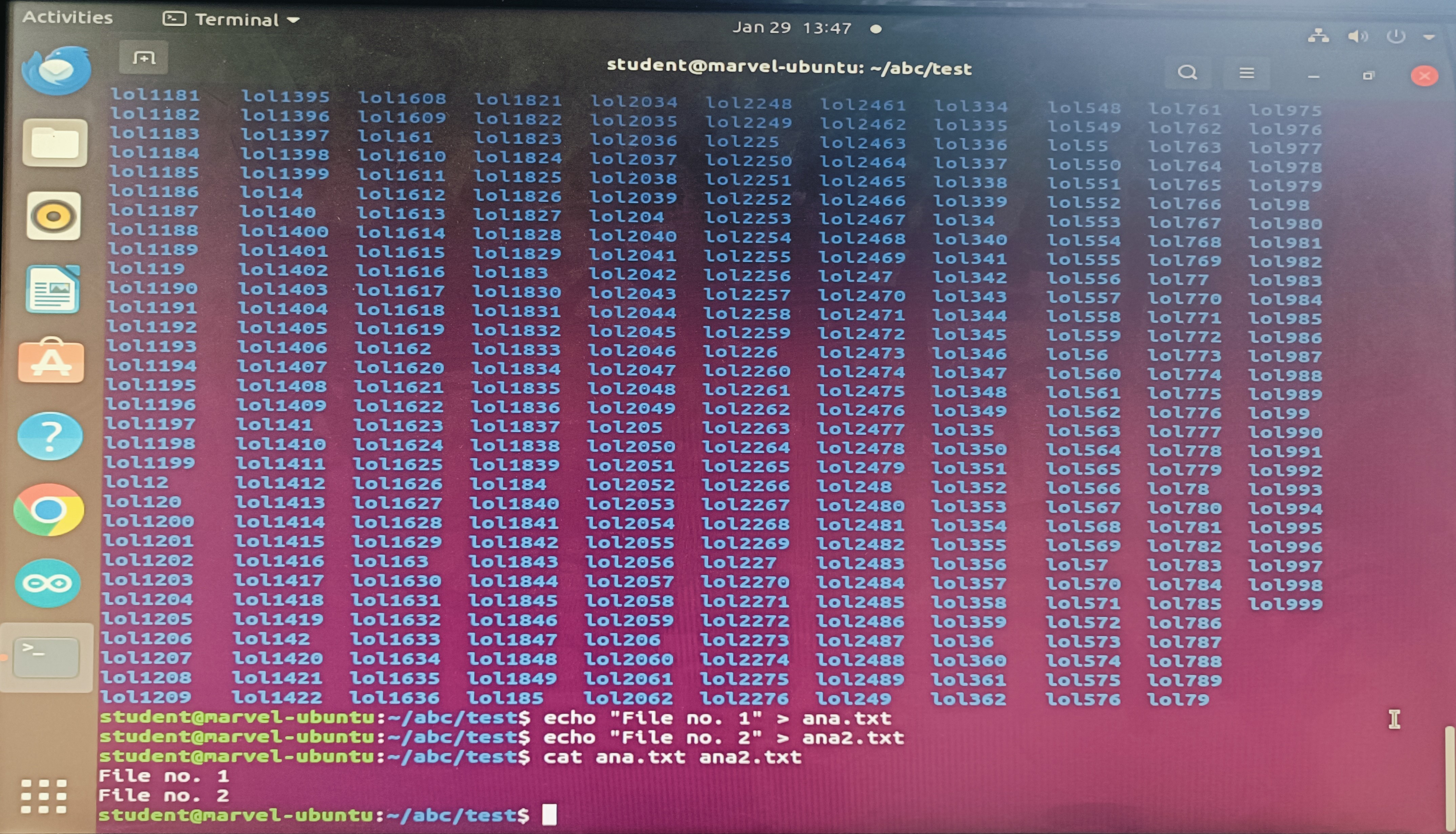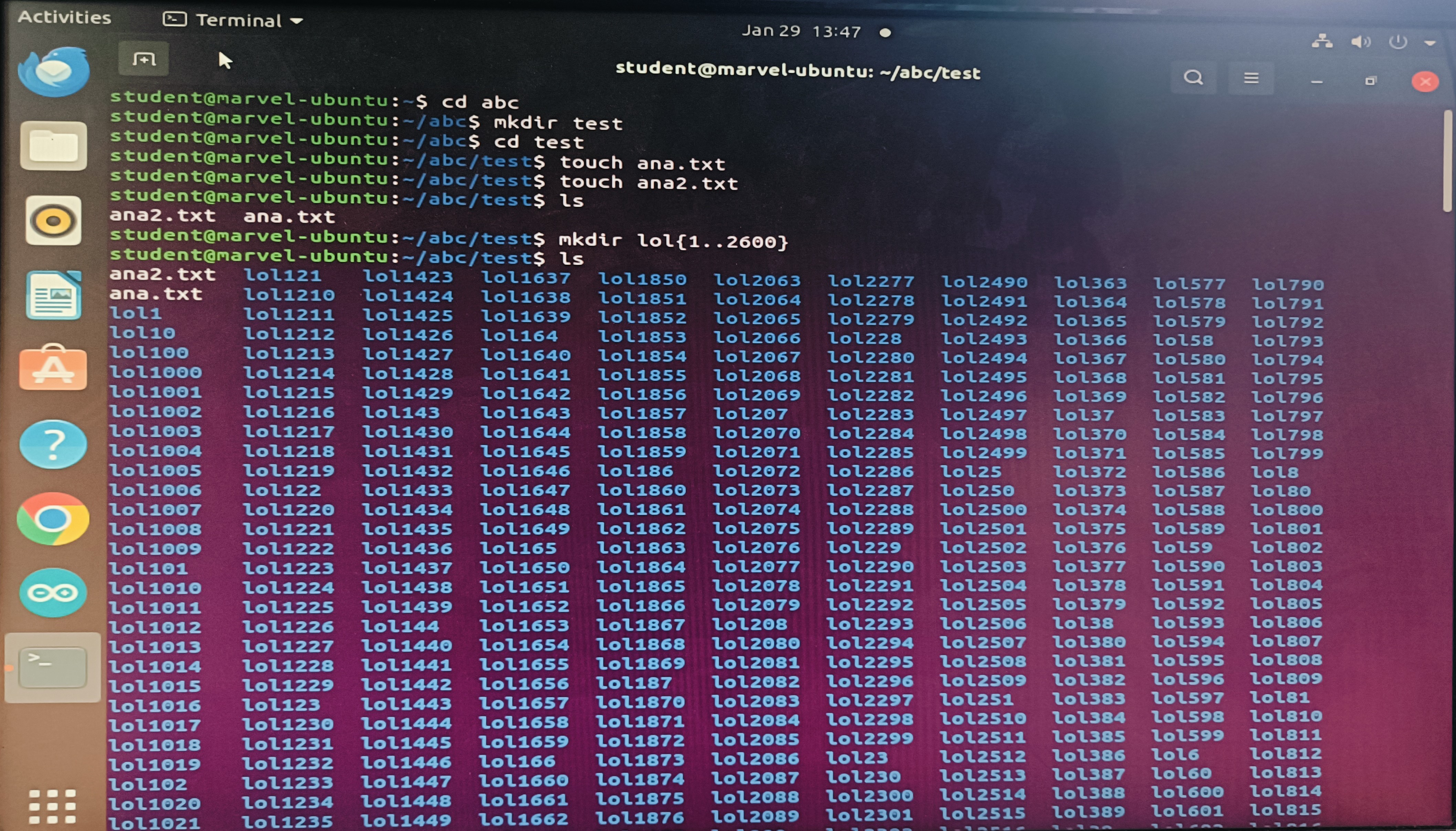 The task was to get familiarised with the Ubuntu command line interface and execute subtasks using command prompts. The following commands were used:
