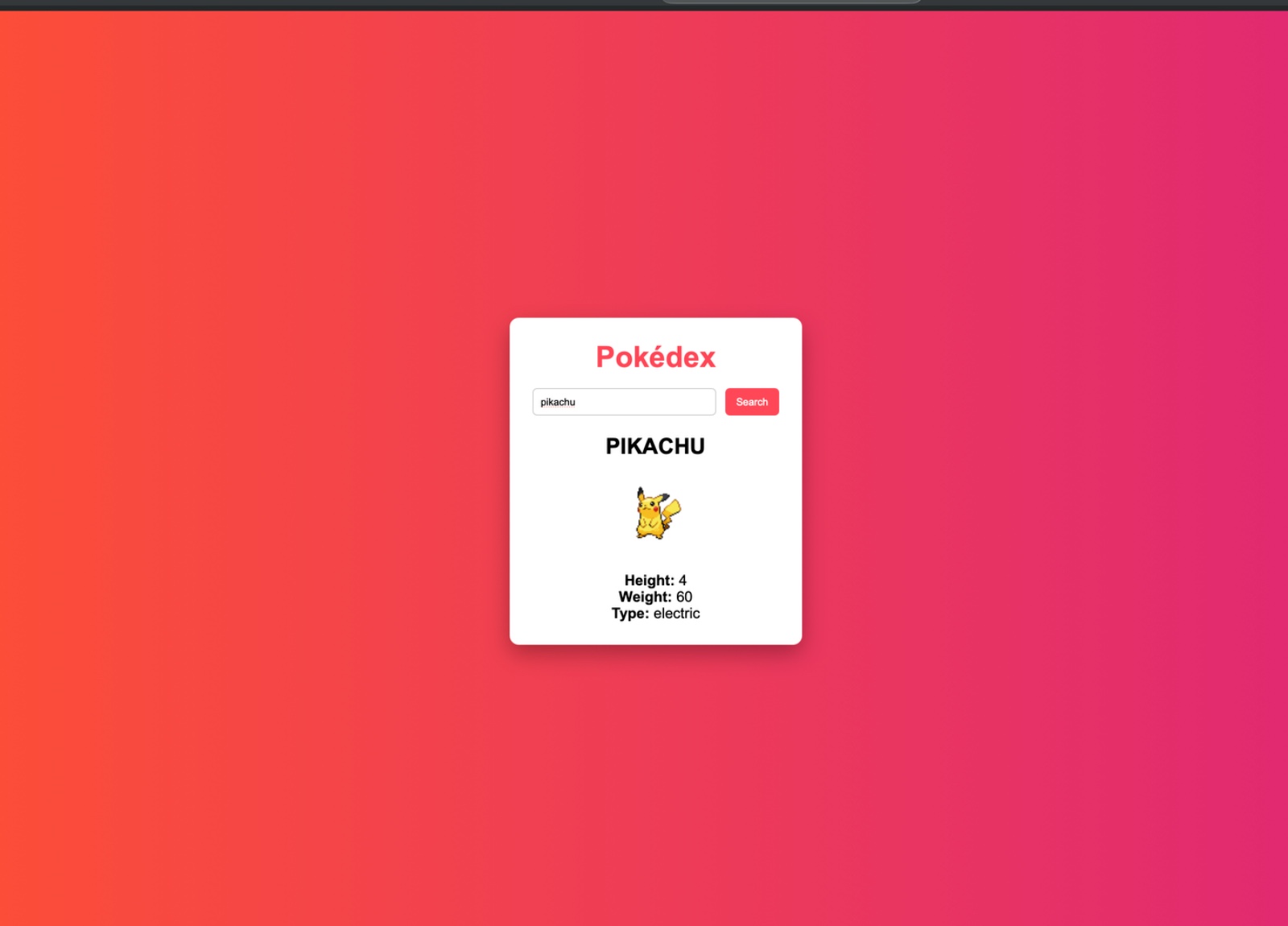 I created a pokedex API by integrating an external API to understand real-time data fetching.it basically works on The user enters a Pokémon name, and JavaScript sends a request to the PokeAPI. The fetched data is then displayed dynamically on the webpage.