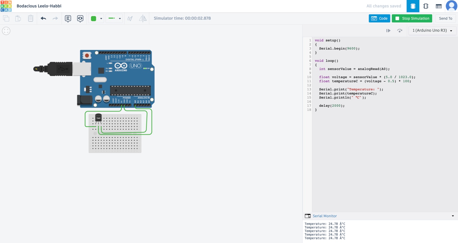 A Temperature Monitoring System using Arduino Uno is an embedded system project designed to measure and display temperature in real time. In this project, an Arduino Uno microcontroller board is used along with a TMP36 temperature sensor to detect surrounding temperature and display the readings in the Serial Monitor.