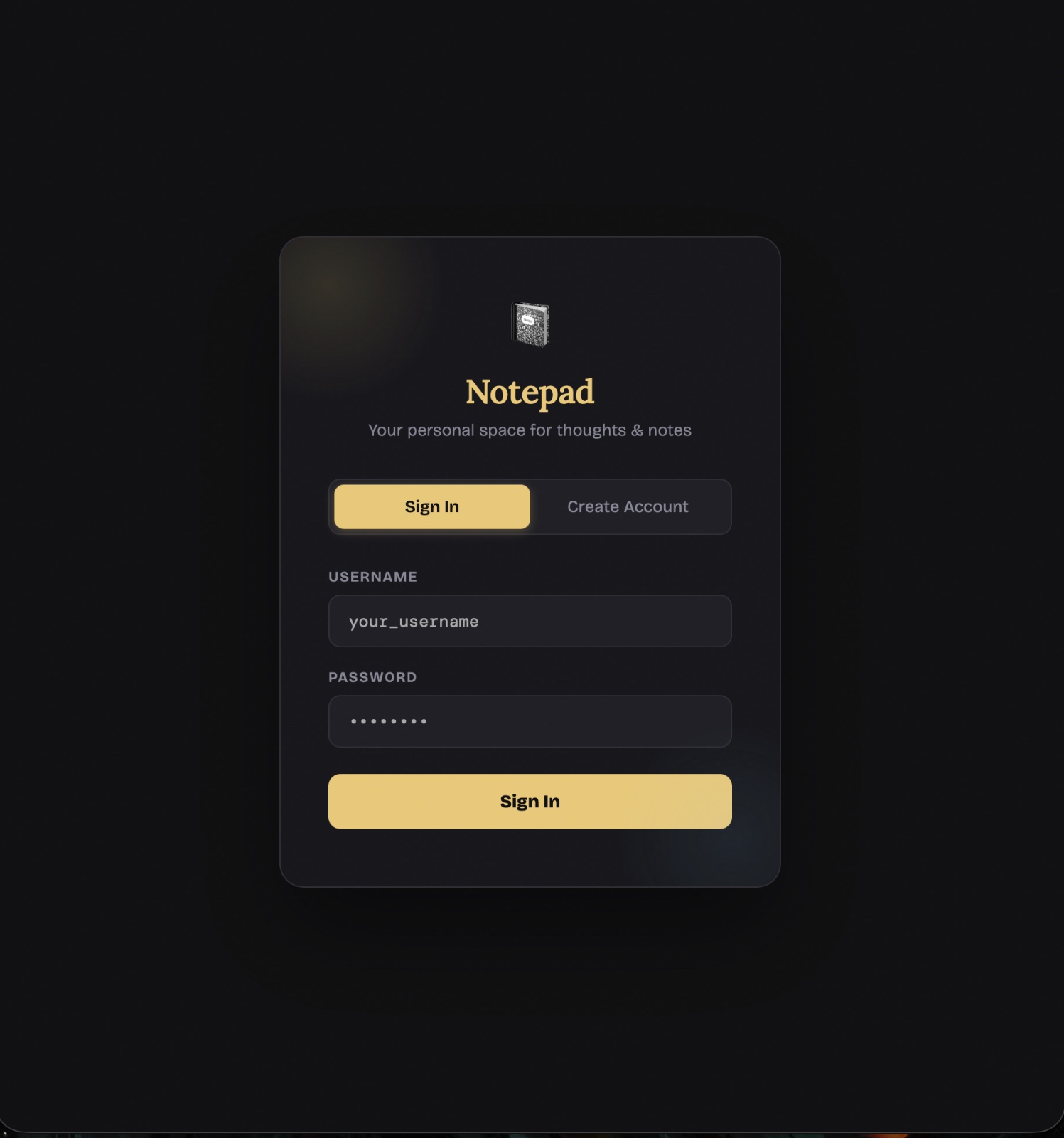 This report presents the development of Notepad, a personal notes web application built using Python (Flask) for the backend and HTML, CSS, and JavaScript for the frontend. The application allows users to register, log in, and manage their personal notes directly through a web browser. Key features include secure user authentication with SHA-256 password hashing, the ability to write and delete notes, and support for uploading .txt files as notes. Notes are stored on a per-user basis in a JSON file, ensuring a simple yet functional data management approach. The goal of this project was to build a lightweight, full-stack web application that demonstrates core concepts of user authentication and dynamic content management.