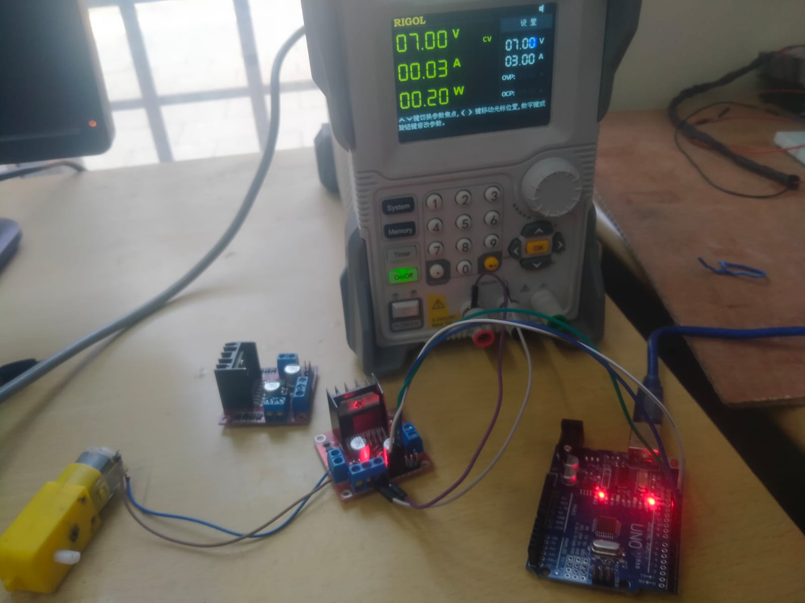 In this task I controlled the speed of a DC motor using an Arduino Uno and a motor driver module. The motor driver was connected between the Arduino and the DC motor to safely control the motor. PWM signals from the Arduino were used to vary the motor speed by changing the duty cycle. Different speed values were programmed in the code to increase and decrease the motor speed at intervals. This task helped me understand PWM-based motor speed control and interfacing motors with Arduino.