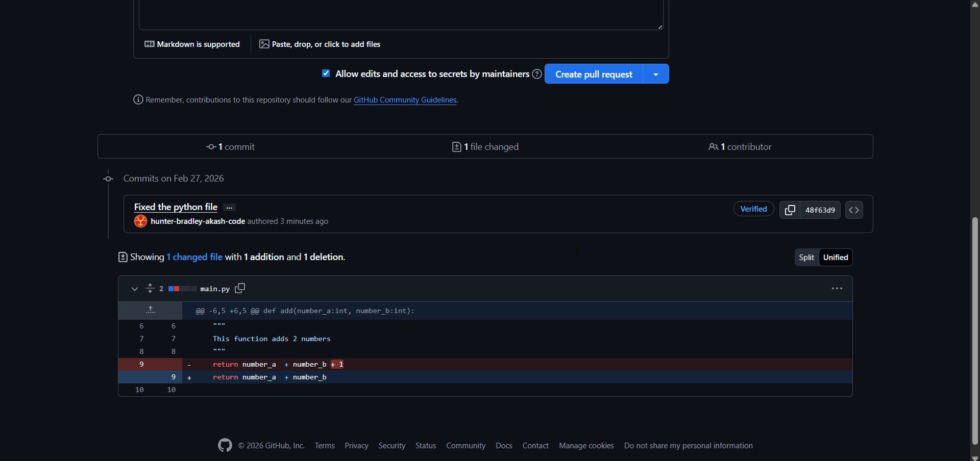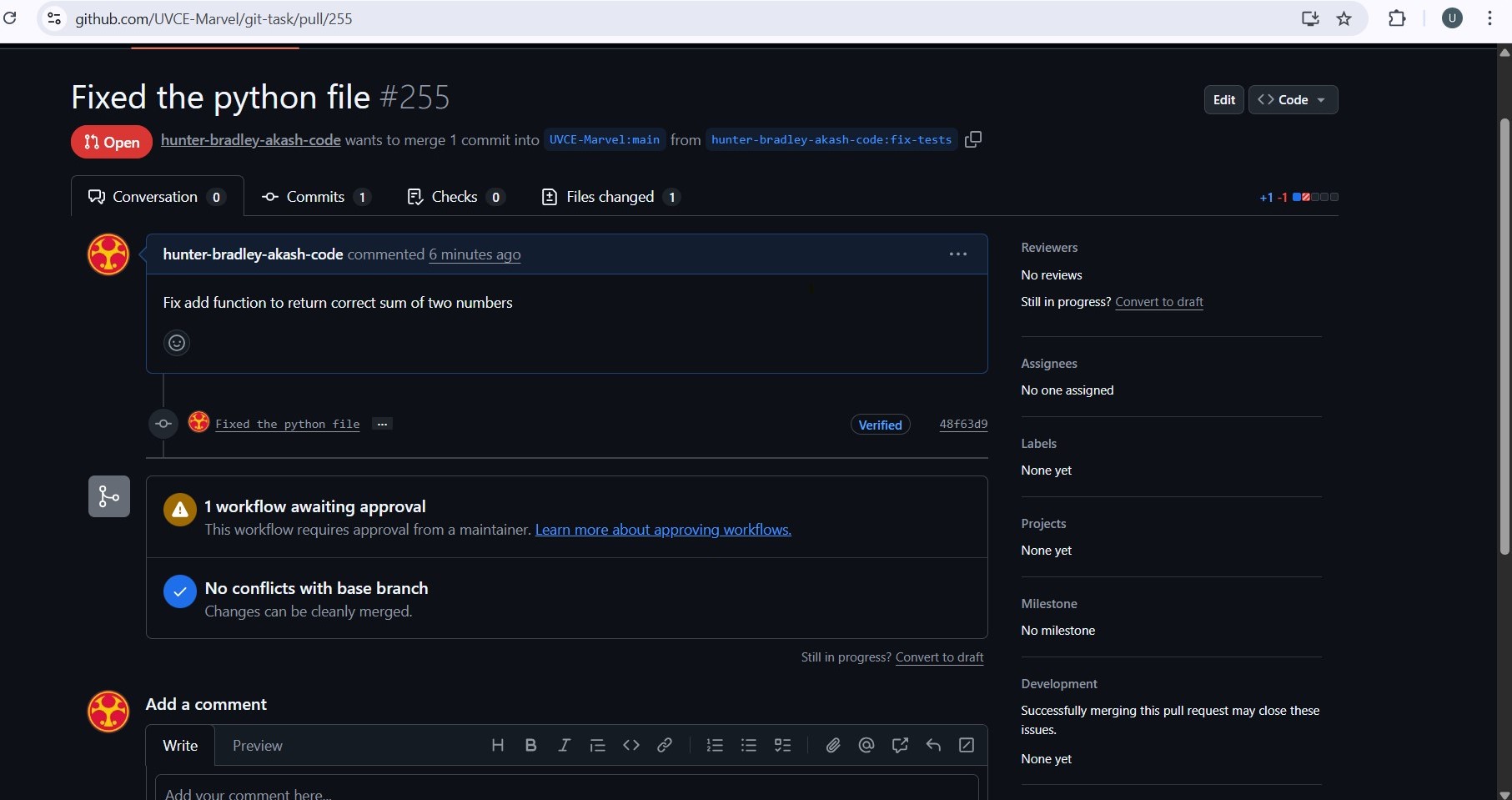 After fixing the issue I committed the changes to a branch and created a pull request on GitHub. This task helped me understand how to identify bugs edit files in a repository, commit changes and contribute to a project using GitHub.