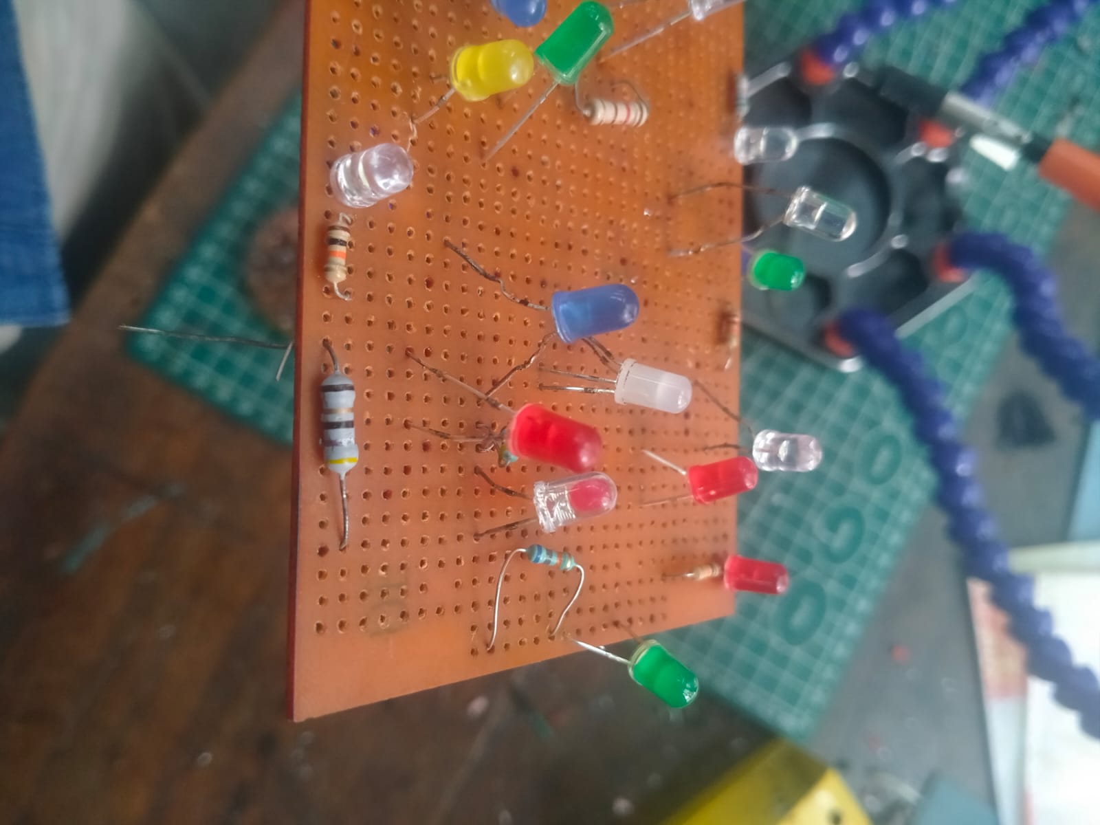 In this task I became familiar with basic soldering equipment such as the soldering iron, solder wire, rosin flux, holder etc... I practiced by desoldering an LED and soldering it back again. This helped me understand proper soldering techniques, heat control and safe handling of electronic components.