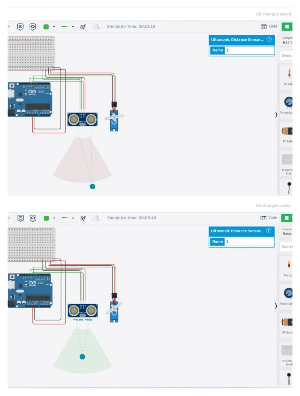In this task I created a Tinkercad account and explored the platform to understand basic circuit simulations. I first studied the example circuits and then simulated a simple circuit using an ultrasonic sensor to measure the distance between the sensor and an obstacle. I also created a radar system using an ultrasonic sensor and a servo motor where the servo rotates the sensor to scan a wider area and detect objects within range. This task helped me understand sensor simulation and basic hardware interfacing using Tinkercad.