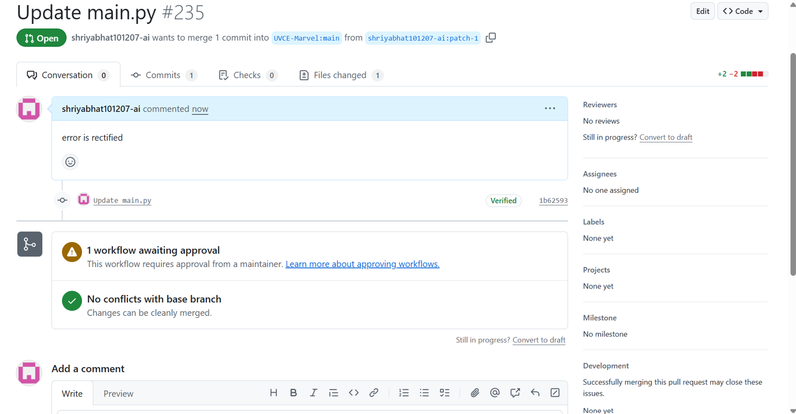 The given repository was explored to understand its structure and the instructions provided in the README file. I studied the GitHub actions to understand how automated workflows can be used to build, test, and deploy the code. I reviewed the issues to track tasks, bugs, or improvement as give in the task. A pull request was created to propose changes to the repository. This allowed the modifications to be reviewed before merging into the main branch.
