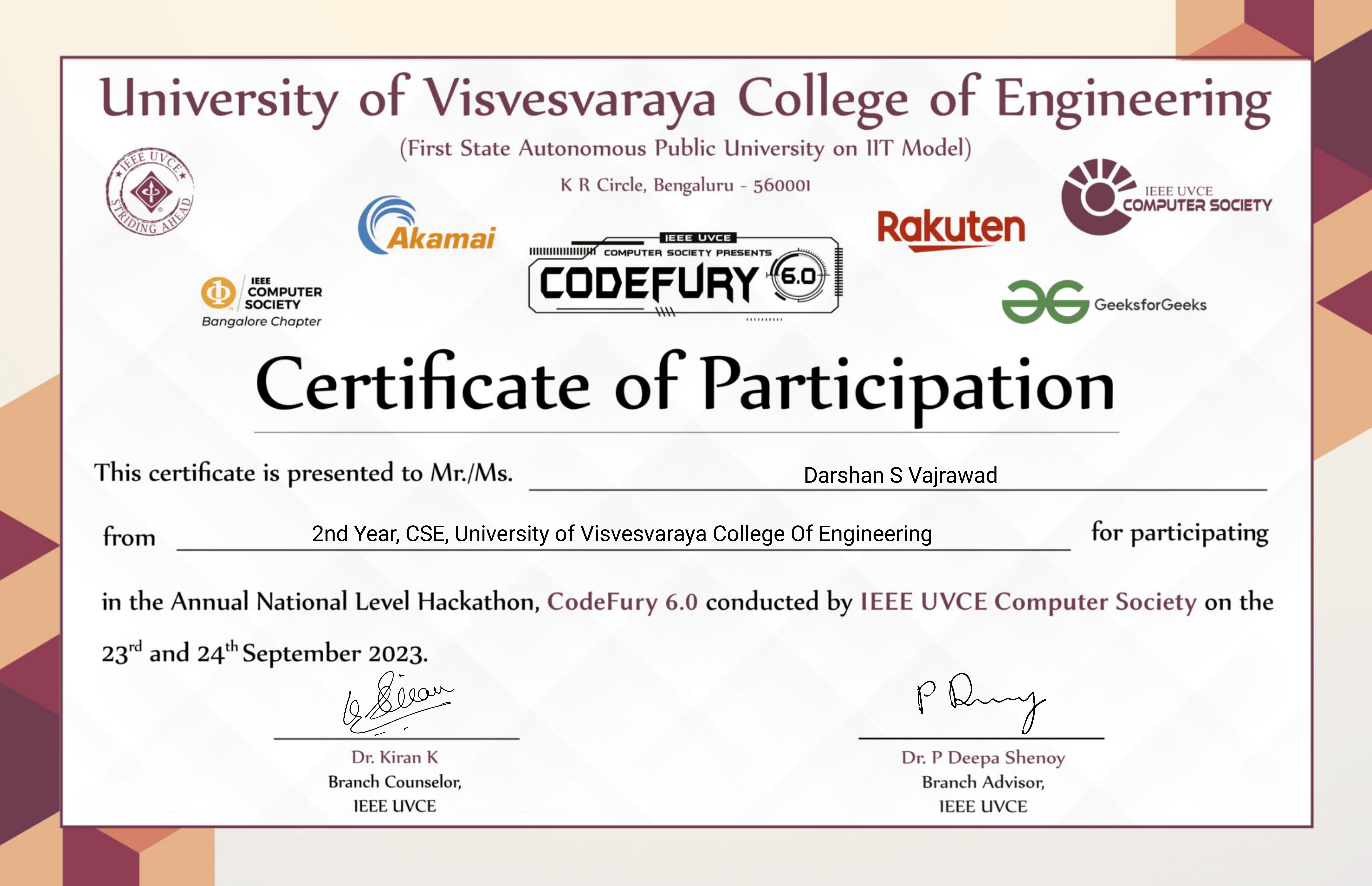 I took part in the CodeFury-6.0 conducted by IEEE UVCE where the competitors in teams were given a task to make a web or mobile application addressing the Mental Health issues among the Gen-Z youths.