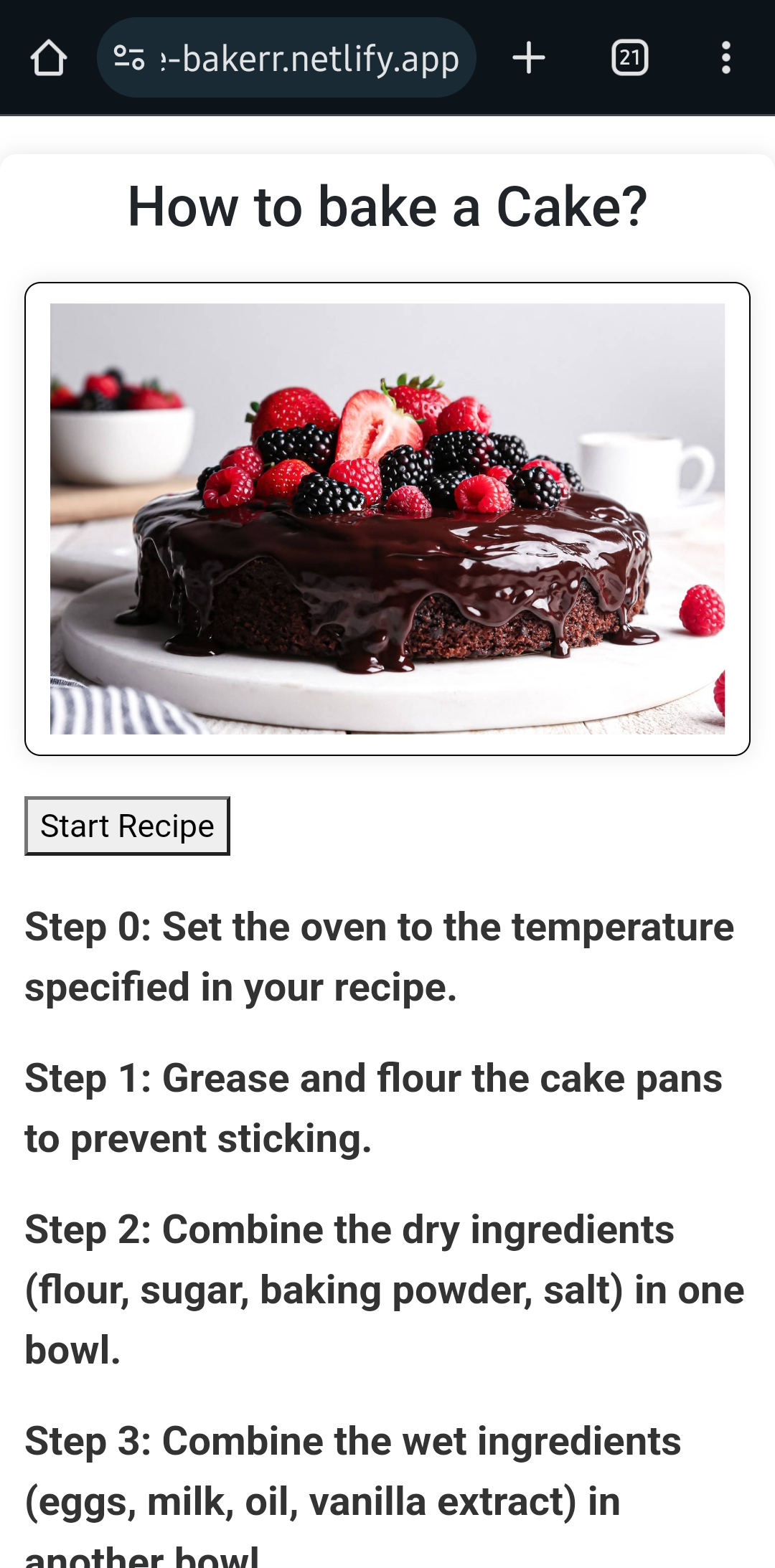I have implemented a small callback based website that displays the steps to bake a cake.