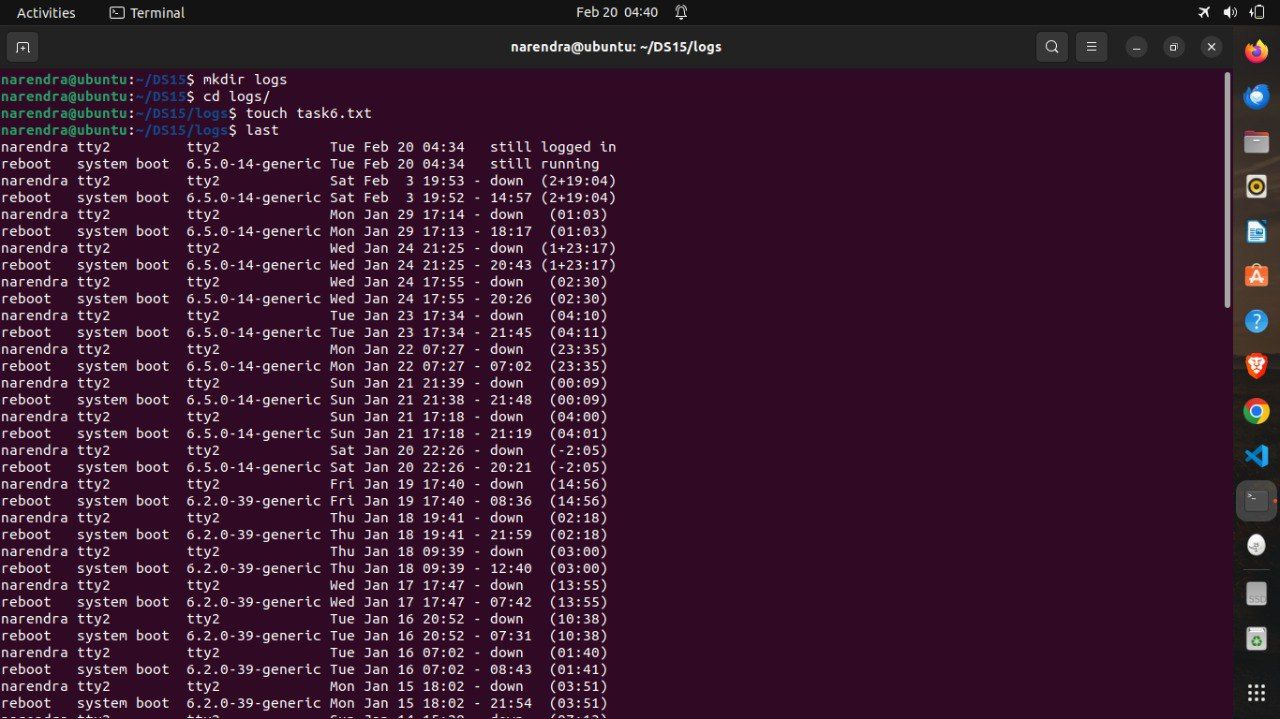 last | grep '.2[0-9] 1[3-9]:.' > task6.txt