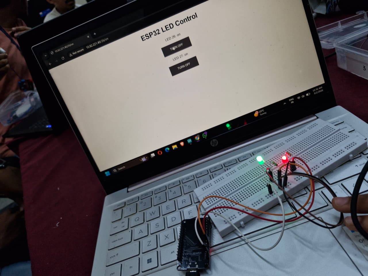 This demonstrates how ESP32 can be used for basic IoT applications, where hardware devices can be controlled remotely through a web interface.