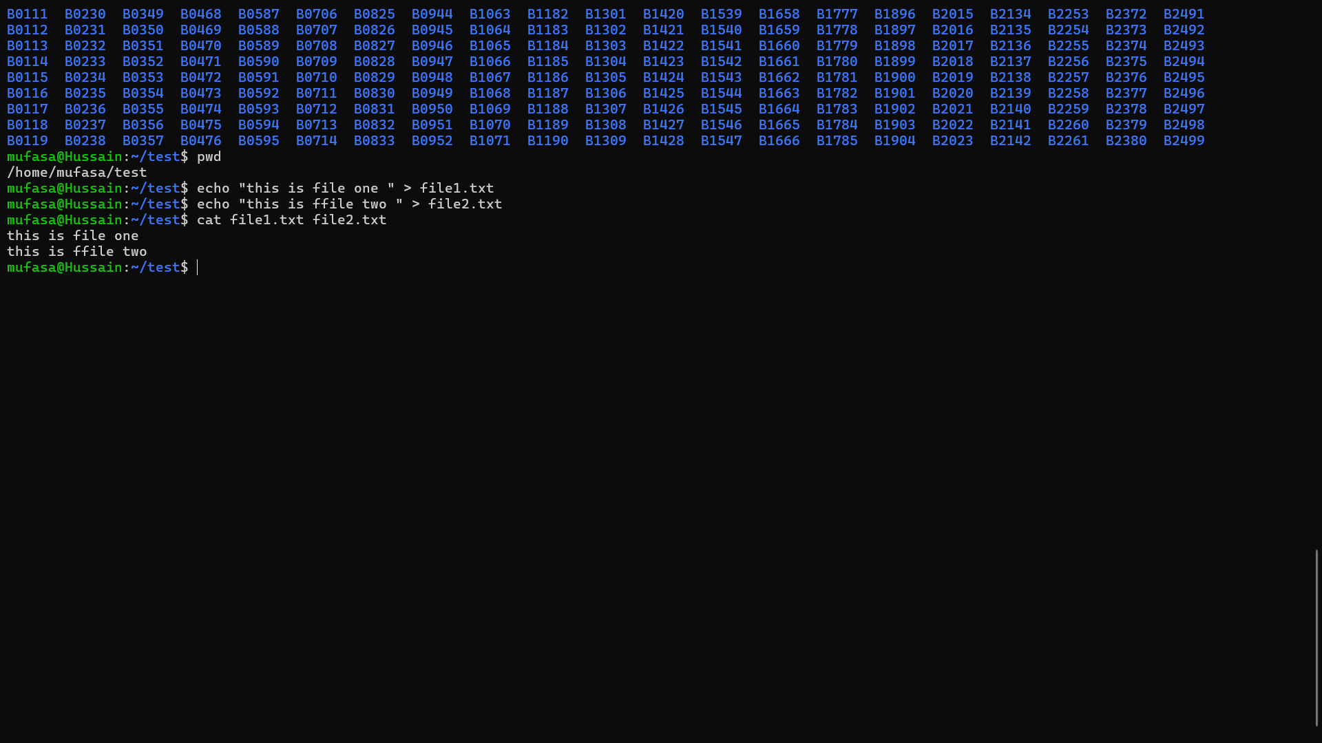 Finally, the contents of the two files were combined using the cat command.
