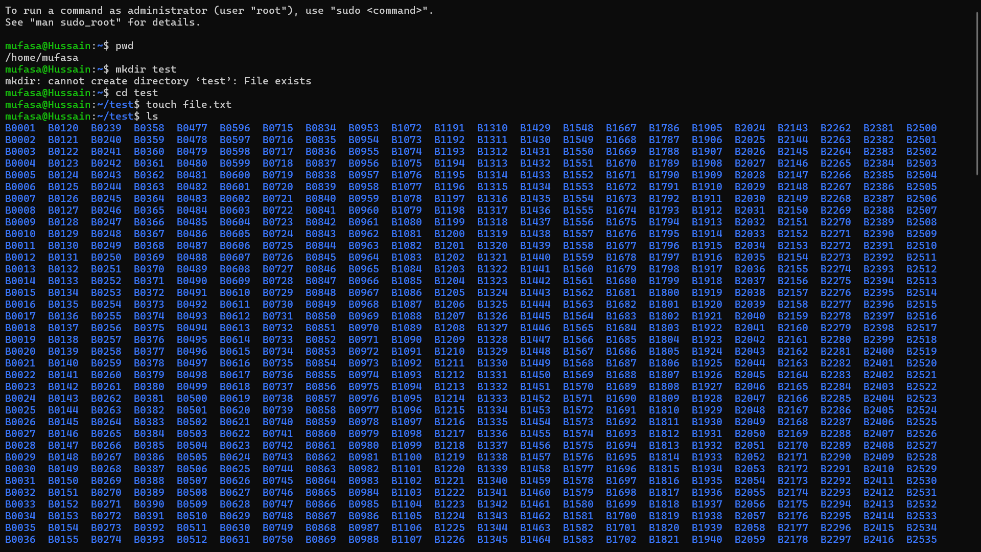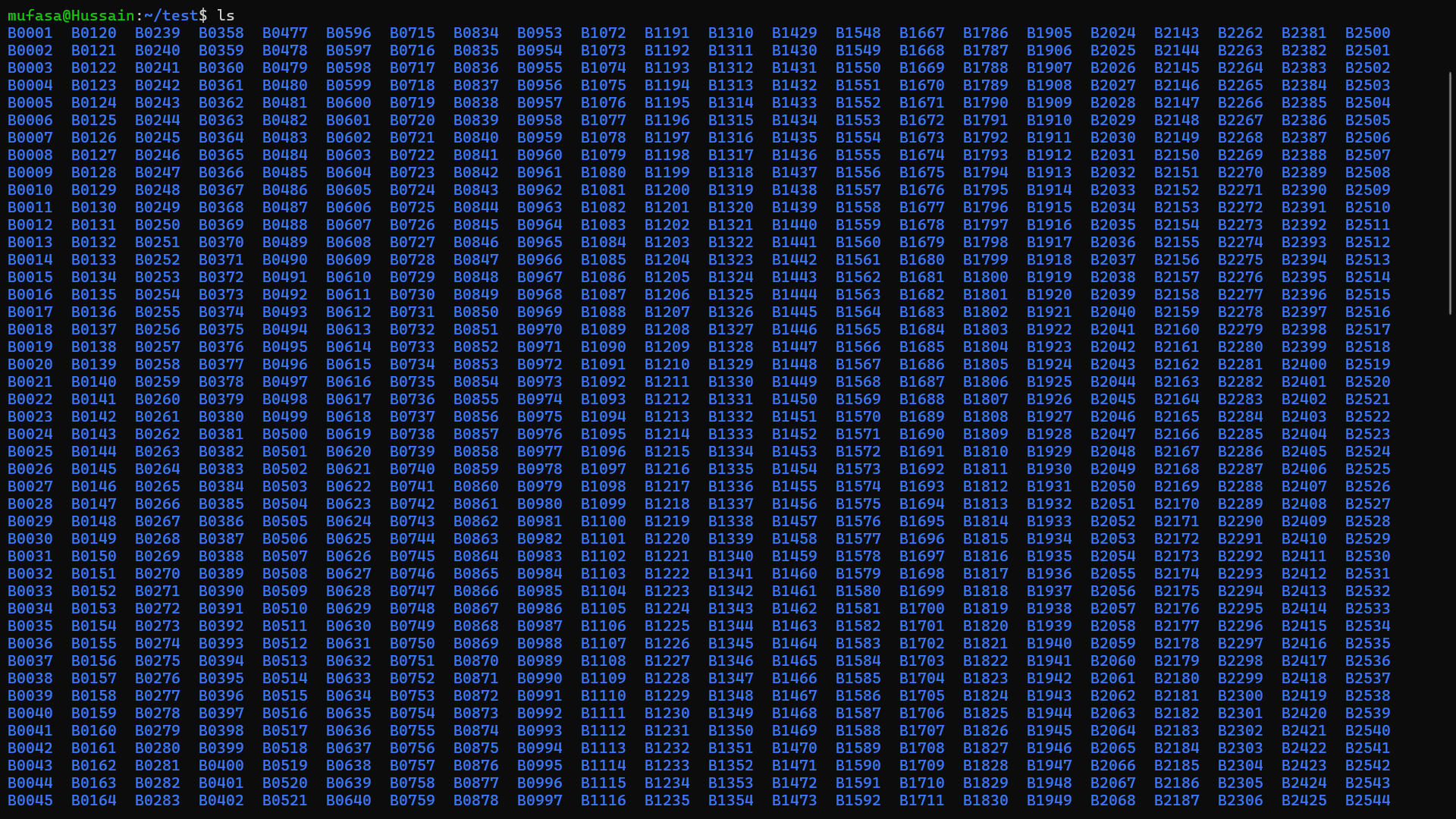 mkdir B{0001..2600}