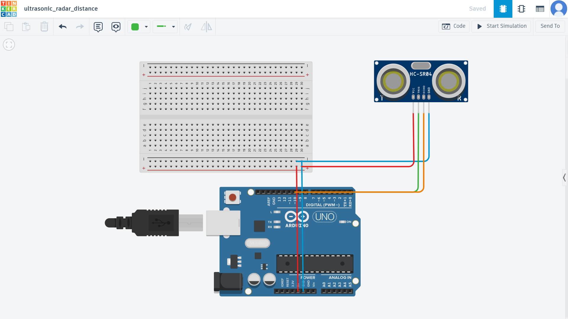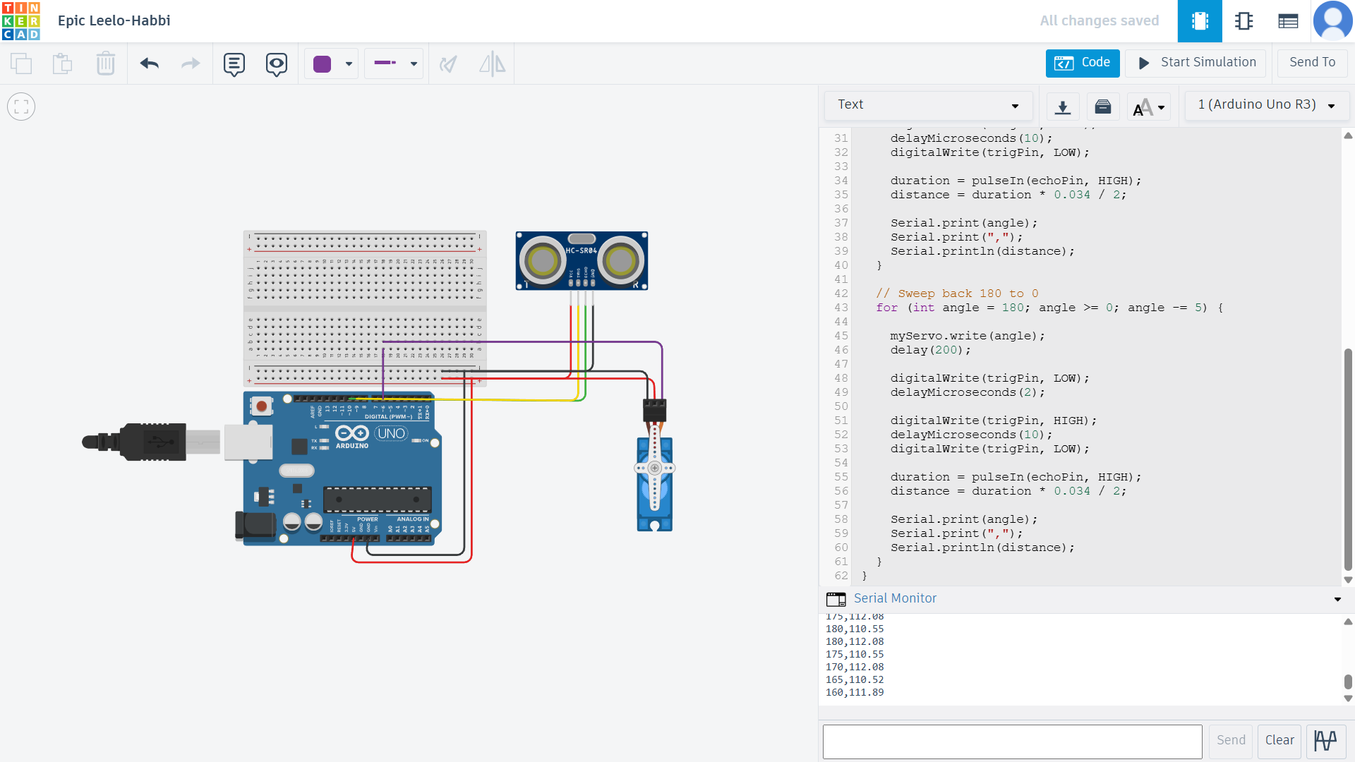 A second version of the circuit was also created where a servo motor rotates along with the ultrasonic sensor to simulate a simple radar scanning system.