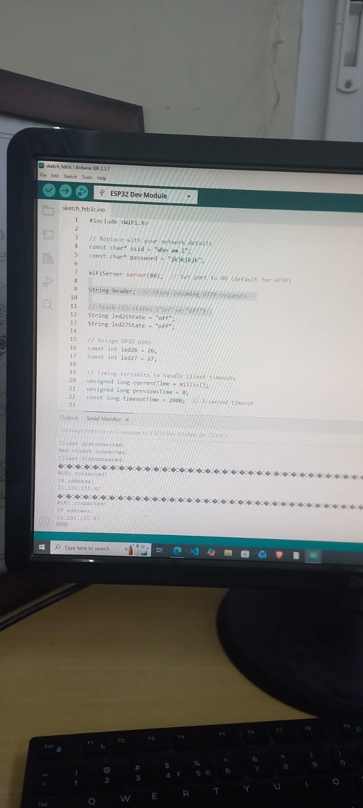 The primary goal is to fabricate a functional web server capable of controlling two LEDs connected to the GPIO pins of the ESP32. This web server will be readily accessible by inputting the ESP32’s IP address into any browser within the local network. The web interface will be equipped with ON/OFF buttons, providing an intuitive means of managing the LED states.