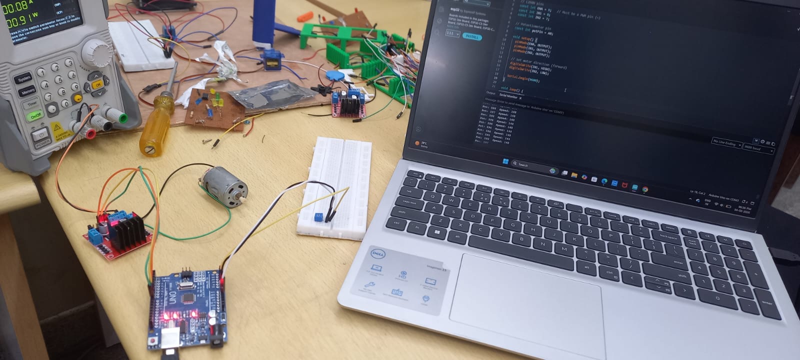 Controlled DC motor speed using Arduino and an H-Bridge motor driver.