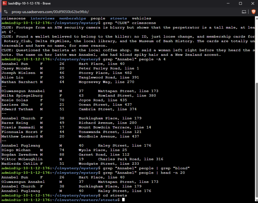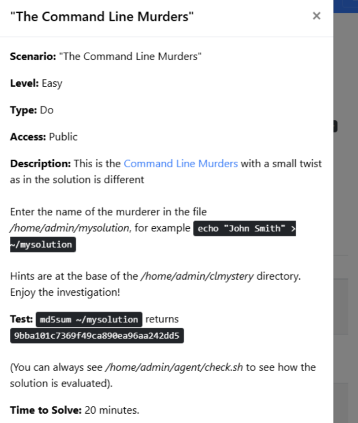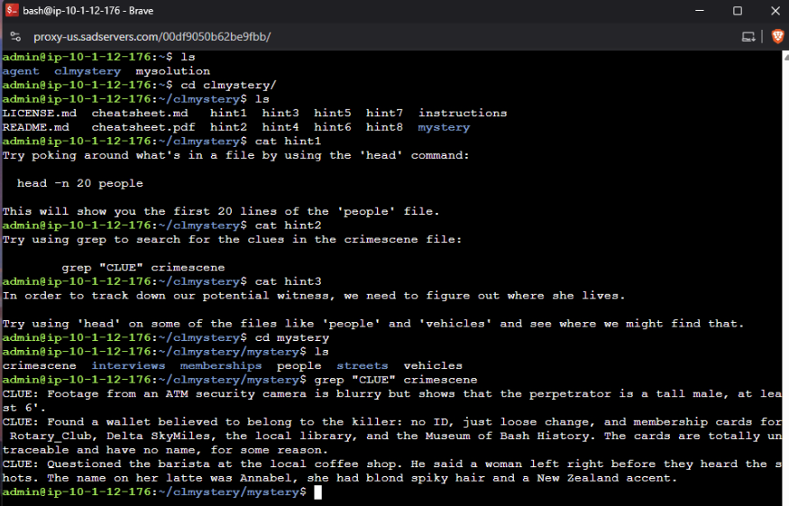 In this task, I worked on a Linux troubleshooting challenge called Sad Servers. The scenario was a “Command Line Murder Mystery,” where I had to investigate a crime using only Linux commands.